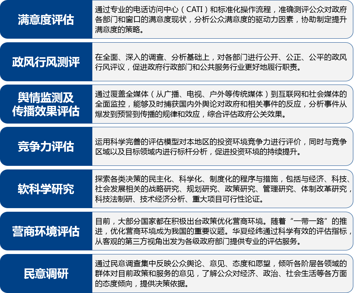 華夏經(jīng)緯可以為各級政府部門提供以下方面的研究咨詢服務: